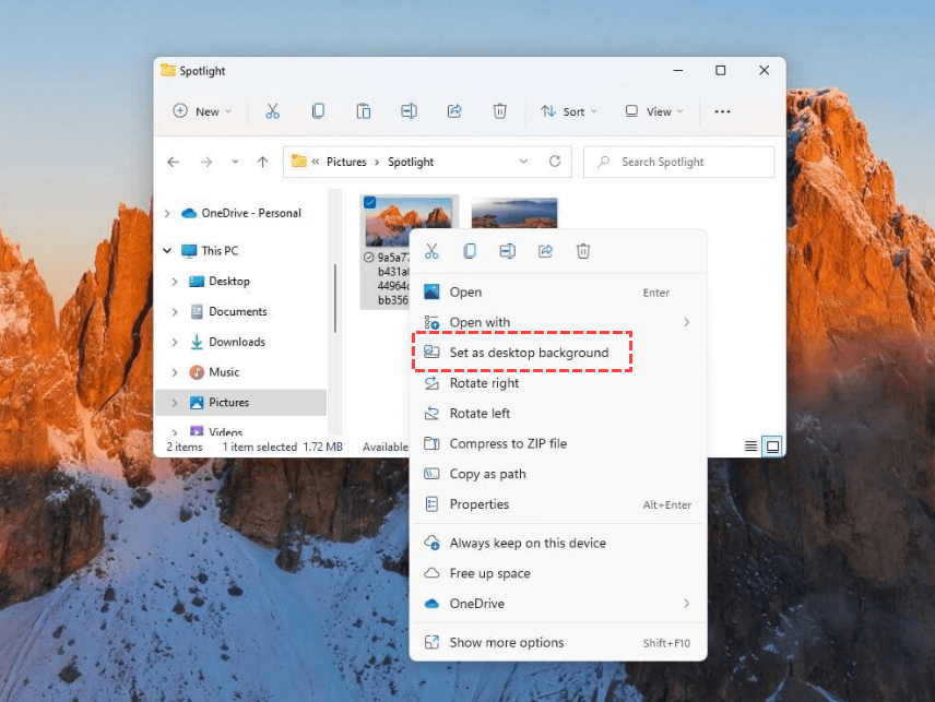 - Windows: Right-click the image > Set as Background.