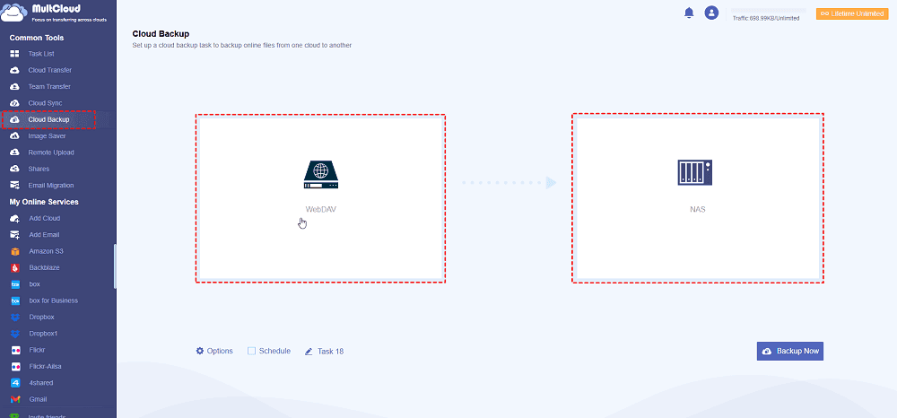 To show you how to perform WebDAV backup with MultCloud, here are the simple steps to backup WebDAV to Synology NAS, just for reference: